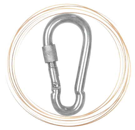 Velmi stabilní, pevná bezpečnostní karabina se šroubovacím uzávěrem, pozinkovaná.