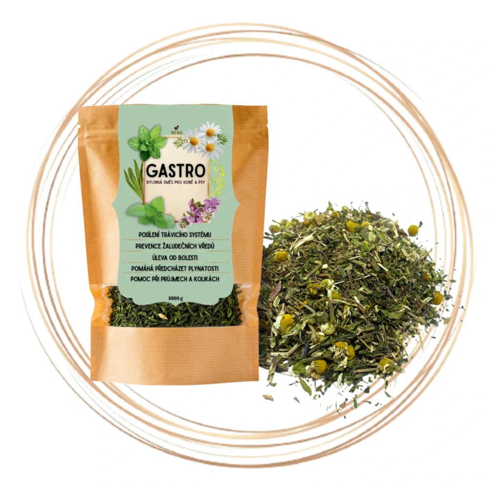 Bylinná směs sestavená speciálně pro koně, kteří mají problém se zažíváním, kolikami či vředy. Směs obsahuje mátu, heřmánek, fenykl, meduňku, mateřídoušku a jitrocel, které se starají o správný chod trávicího systému, zklidňují bolest, předcházejí plynatosti, průjmům či kolikám a účinně podporují léčbu žaludečních vředů.