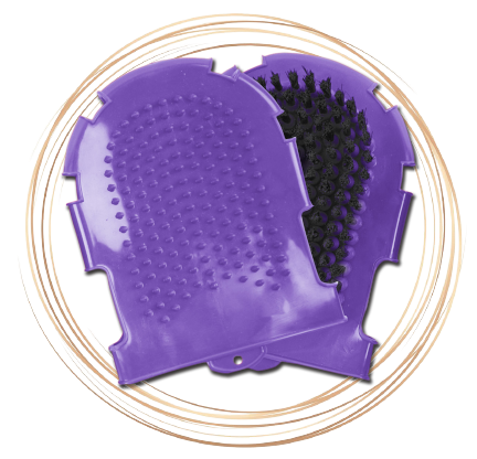 - Výborný pomocník při mytí srsti. Jedna strana gumové knoflíky, druhá strana silné, syntetické štětiny.
