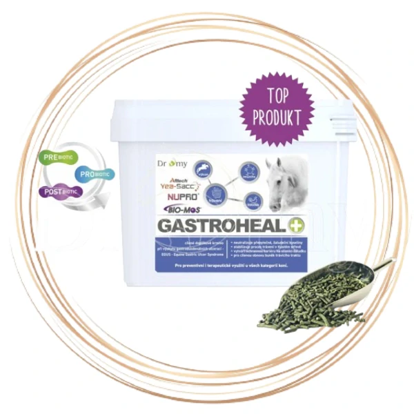 GastroHeal je komplexní, doplňkové krmivo s nízkým alergenním potenciálem, určené pro koně s výskytem gastroduodenálních ulcerací - EGUS - Equine Gastric Ulcer Syndrome.
