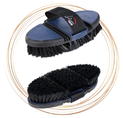 Měkký kartáč s ohebnými díly pro pohodlnější použití. Skvěle padne do ruky a přizpůsobí se koňskému tělu.