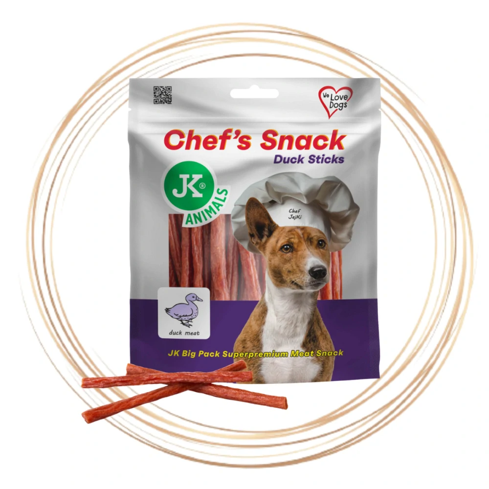 JK ANIMALS Chef's Meat Snack, sušené kachní tyčinky, 200 g