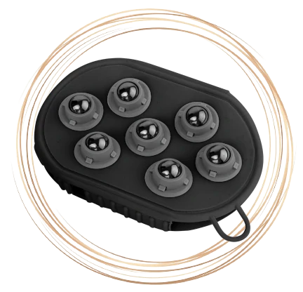 Masážní rukavice s gumovými výstupky z jedné strany a s masážními kuličkami z druhé.