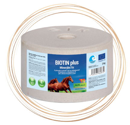 Minerální solný liz s biotinem Biotin plus doplňuje ideálně denní krmnou dávku optimálním mixem soli, stopových prvků a biotinu.