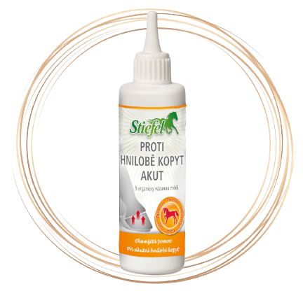 Stiefel Proti hnilobě kopyt akut chrání střelku před vnějšími vlivy, např. amoniakem nebo močí v podestýlce. Tyto látky často narušují kopyta. Stiefel Proti hnilobě kopyt akut pečuje o střelku, udržuje ji i celé chodidlo suché a pomáhá zabránit hnilobě ve střelkové rýze.