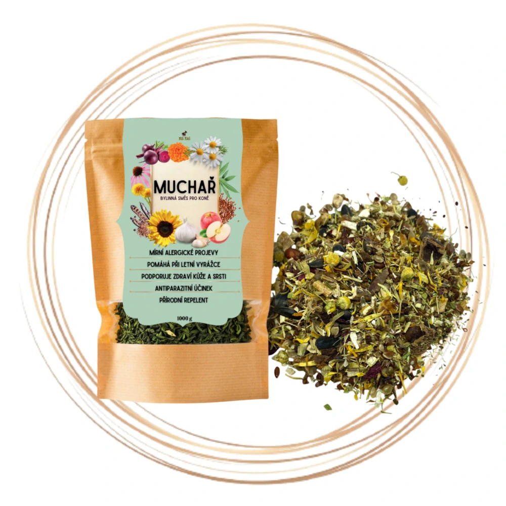 Unikátní bylinná směs pro koně a psy trpící letní vyrážkou, ekzémy, šupinatěním kůže atp. Antiparazitní a repelentní účinek zajistí zvířatům správný chod trávicího systému a omezí obtěžování hmyzem.