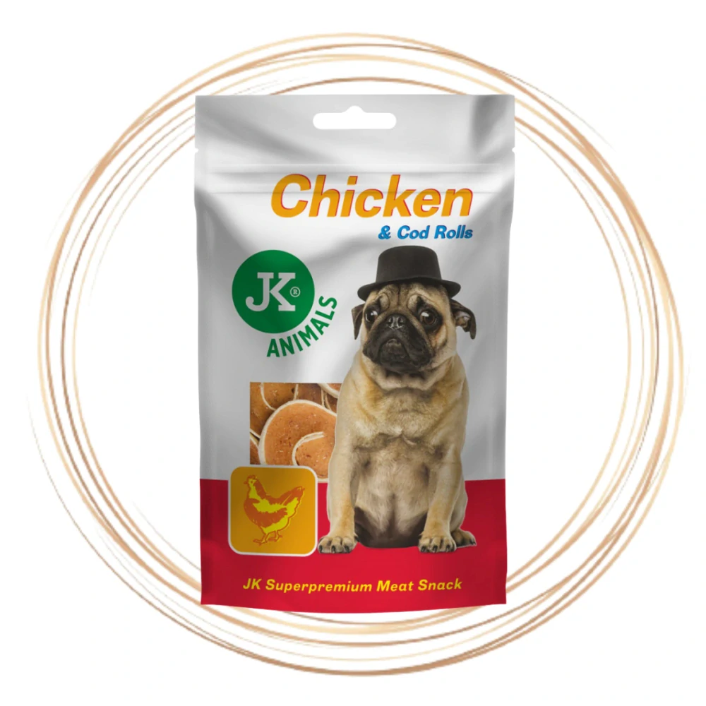 Sušené kuřecí maso a treska v rolce, 80 g, masový pamlsek pro psy (Chicken & Cod Rolls Meat Snack)Skladem49 Kč/ ks43,8 Kč bez DPH
